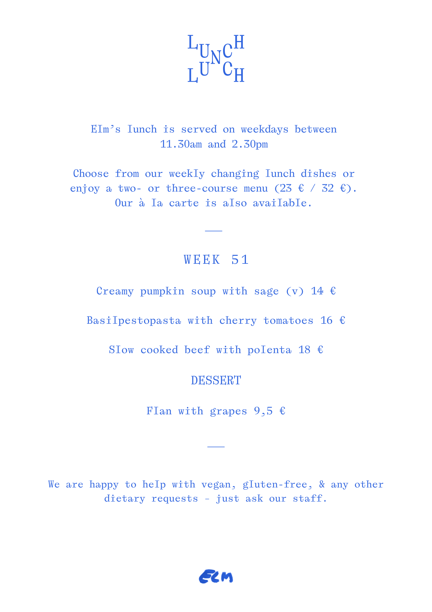 Elm is a restaurant by chefs Carlos Henriques (Portugal), Albert Franch Sunyer (Spain), and Luka Balac (Serbia), also the trio behind Nolla and Nolita. Our approach to hospitality is shaped by responsibility, quality, and the warmth of our Southern European roots—values that guide us and our team across all three restaurants.
