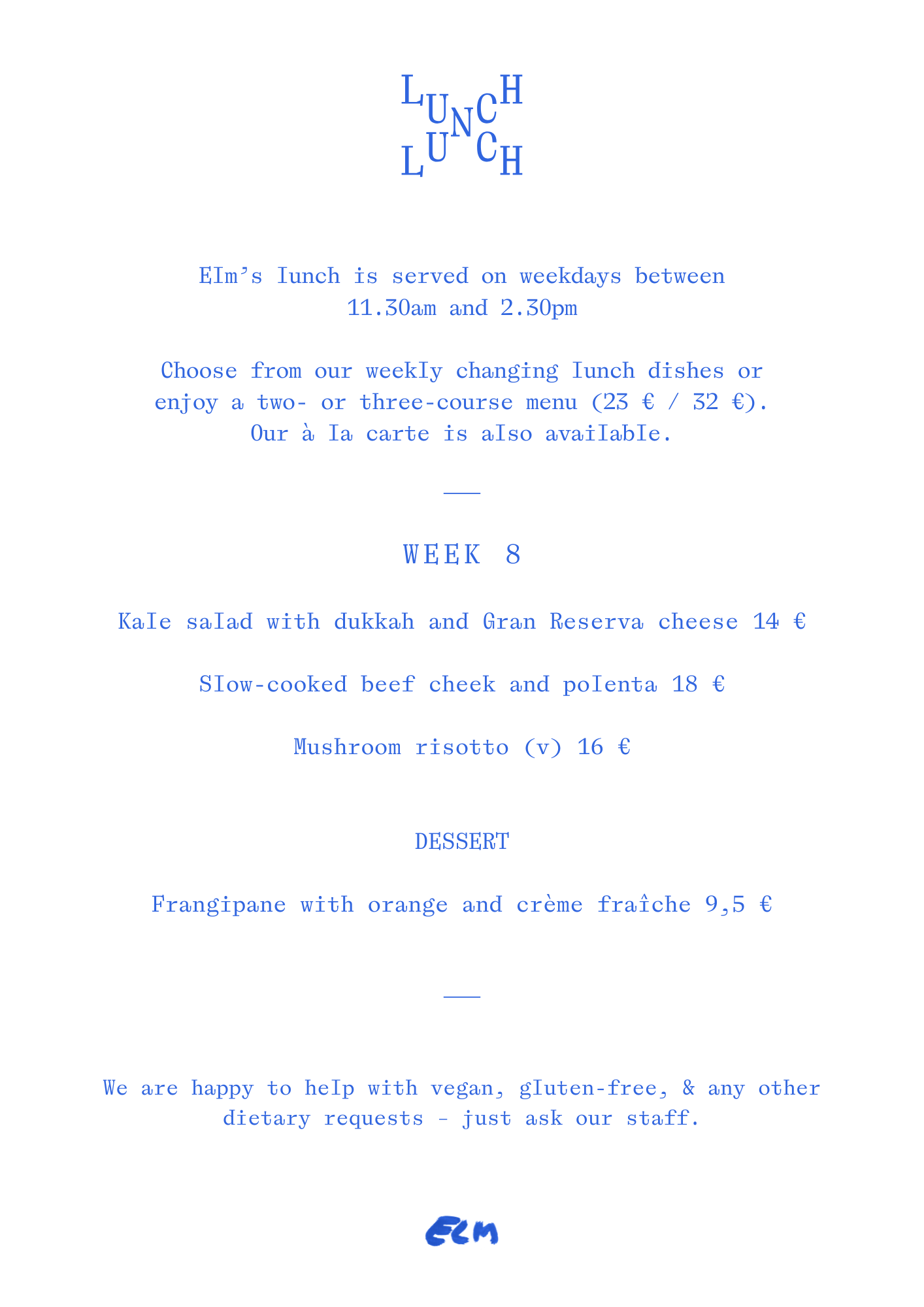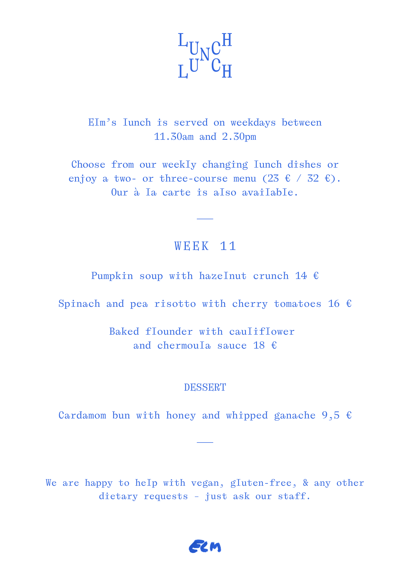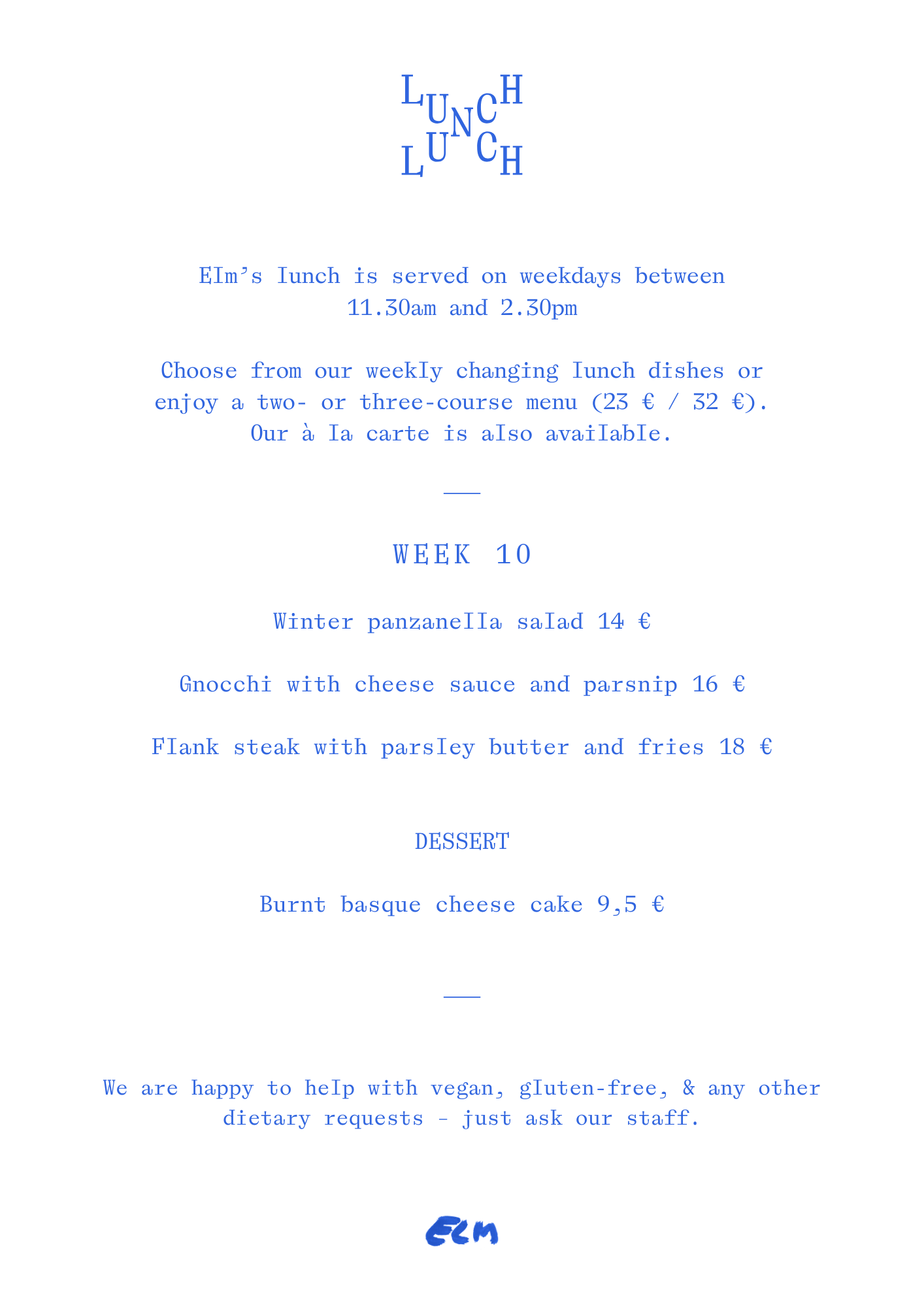 Restaurant Elm (2022) is restaurant on the edge of Kaivopuisto in South Helsinki serving lunch & dinner throughout the week. Our ingredient-driven cooking is guided by the seasons and our Mediterranean roots, offering simple dishes made with carefully selected ingredients. We warmly welcome both bookings and walk-ins—whether you’re stopping by for a quiet lunch, catching up over coffee, or sharing a long-table meal.