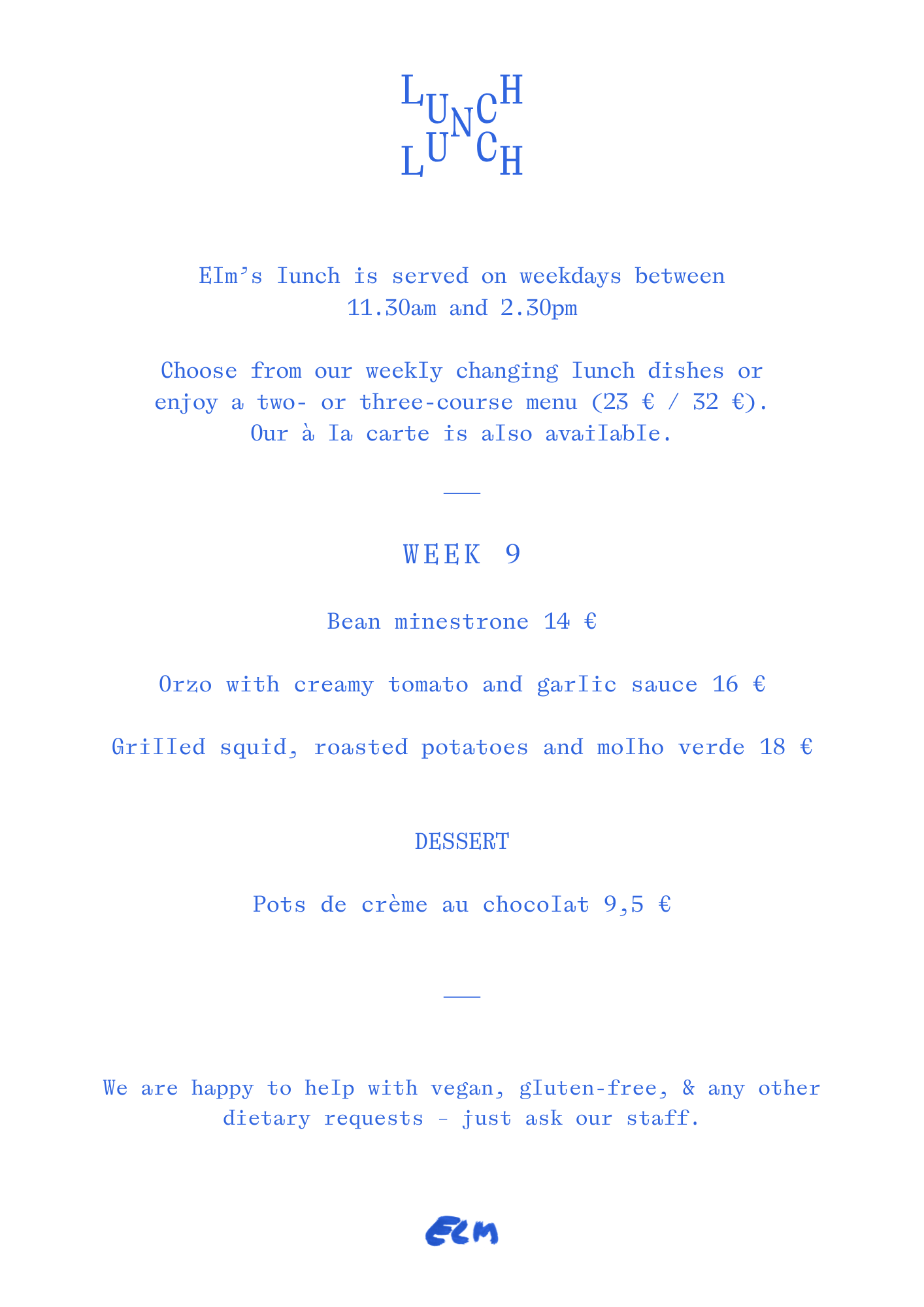 Restaurant Elm (2022) is restaurant on the edge of Kaivopuisto in South Helsinki serving lunch & dinner throughout the week. Our ingredient-driven cooking is guided by the seasons and our Mediterranean roots, offering simple dishes made with carefully selected ingredients. We warmly welcome both bookings and walk-ins—whether you’re stopping by for a quiet lunch, catching up over coffee, or sharing a long-table meal.